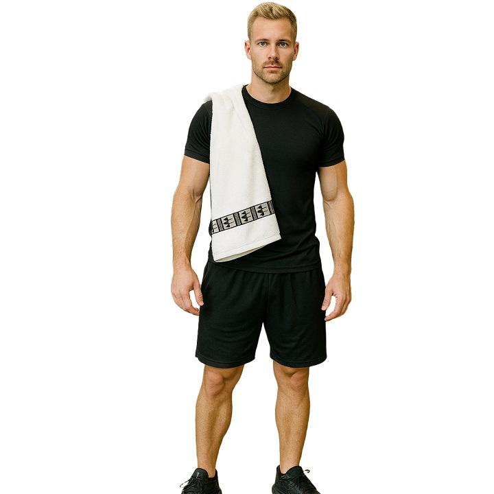 Modisches Badehandtuch aus Baumwolle mit FIGHTERS Streifen an beiden Enden.